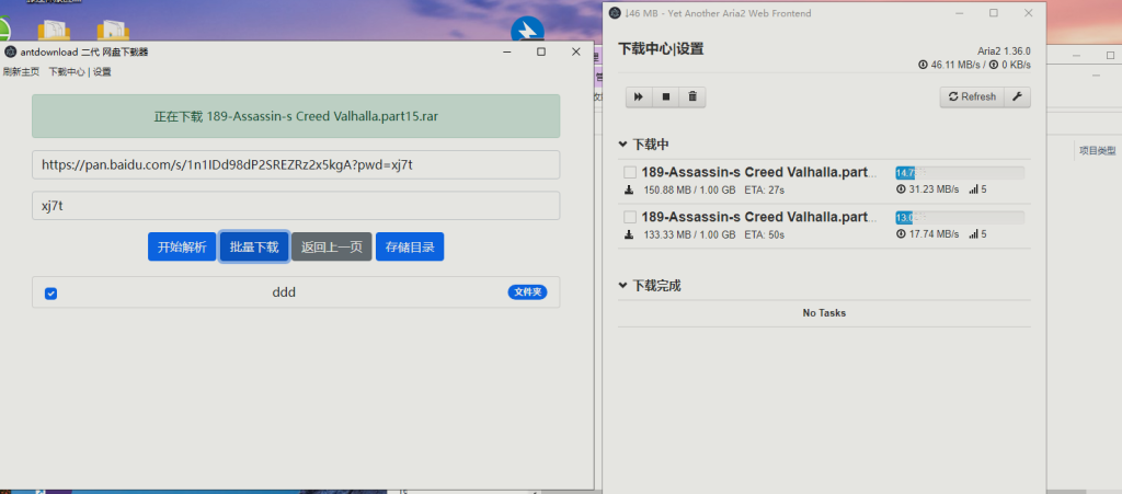 antdownload2 中文名蚂蚁下载器二代,是在antdownload一代基础上重构的百度网盘无限速下载器。软件支持解析百度用户分享网盘链接,获取文件的列表,可批量文件夹打包下载,设置下载路径,支持多线程下载,中断源下载(前提链接未失效),核心要点是能使下载的文件不受任何官方限速影响,是当前能解决百度限速的解决方案之一程序。