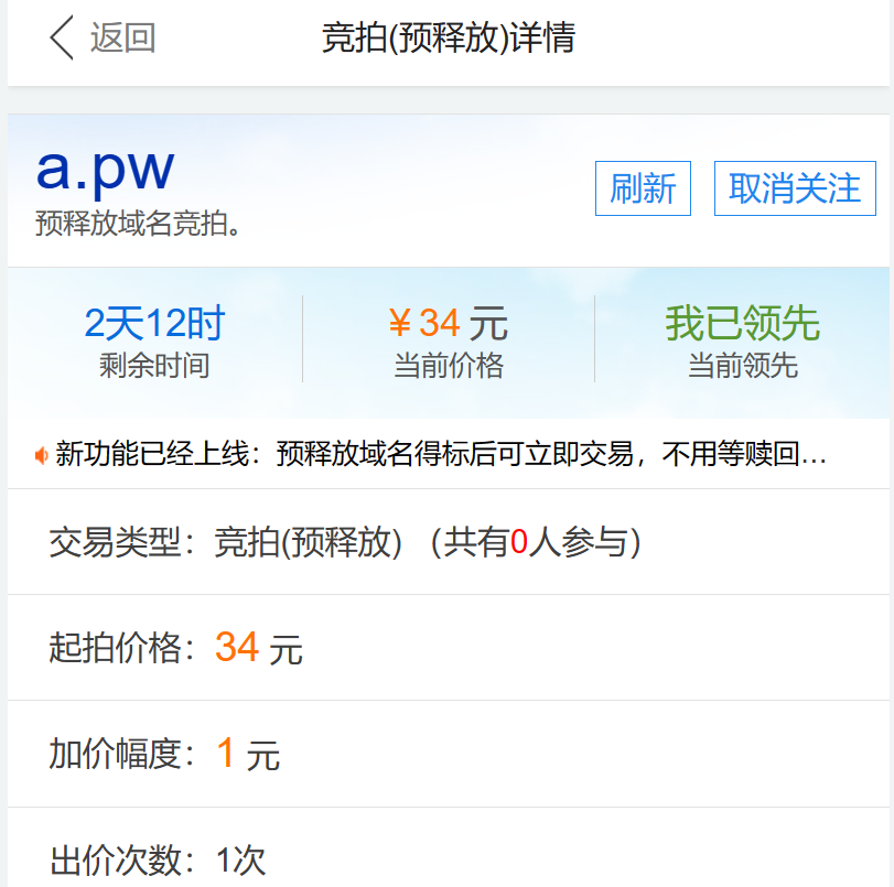 单字符a.pw 正在西部竞价34元起步