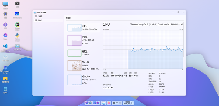Windows12系统电脑,100G内存,CPU 1664.0GHz,装逼使用,请勿当真
