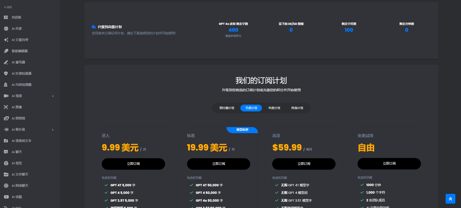 您还可以创建精细的订阅计划,其中包括要使用的精确模型和大量附加功能。它的写作助手功能适用于任何业务